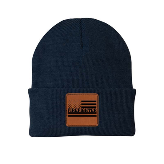 Custom Engraved Leather Patch, Firefighter Chunky Knit Beanie