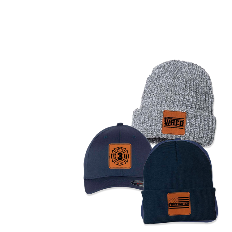 Custom Engraved Leather Patch, Fire Department Flex-fit Hat