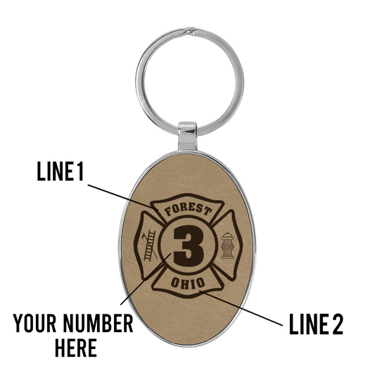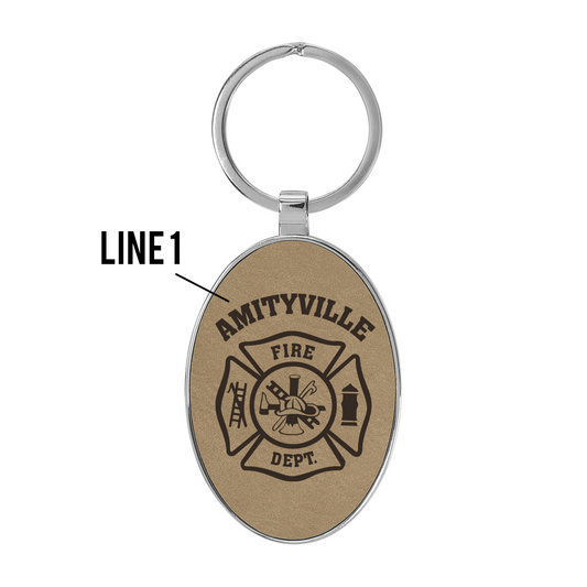 Firefighter Laserable Leatherette/Metal Oval Keychain With Customized Maltase