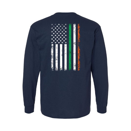 Irish/American Flag Clover Design, Firefighter Long Sleeve T-Shirt