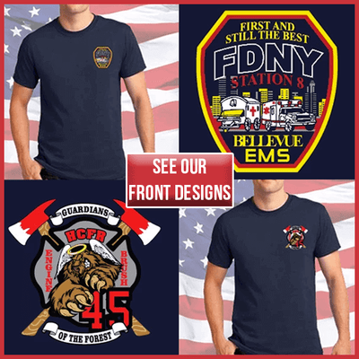 Custom design personalized apparel for your fire department! Discount pricing includes your choice of design and clothing options.