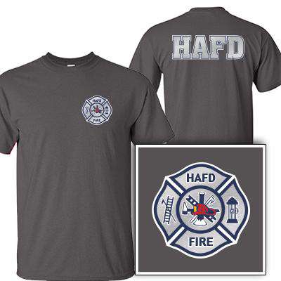 This Custom Fire Department Maltese Cross T-shirt is the new standard for any firefighter. The text inside the Maltese can be changed on the front as well as the letters on the upper back. Options include shirt color and size.