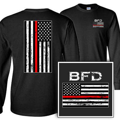 Distressed Red Stripe Flag Design, Firefighter Long-Sleeve Shirt