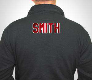 This customization option allows you to add 2-inch twill sewn-on letters to the upper back of your garment. These letters have a glue backing that is heated into place first on the back so there are no bubbles, then each layer is sewn down. There is an option to add 1 or 2 color letters on the back. If you'd like to add 1-color letters select NONE in the border color drop-down. Once you select the colors you would like to use, you need to change the quantity to the amount of letters used in the word. I.E. - photo shows SMITH, this would be quantity of 5. Selecting this option will add 2-3 business days to the delivery time.