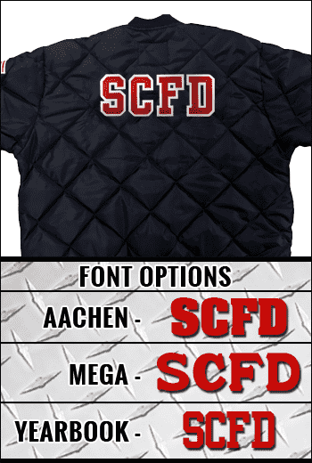 This customization option allows you to add 2 to 4 letters to the upper back of a garment. These letters are 4-inch in size and are made of twill fabric. The fabric has a glue backing that is heated into place first on the back so there are no bubbles, and then each layer of letter is sewn down. Please only enter 2-4 letters to be used, if you are looking to add more letters to your back, please call customer service for other options. There are 3 different fonts to choose from. The price is $5.99 for 1 layer of letters and $11.98 for letters with a top color and a border color.