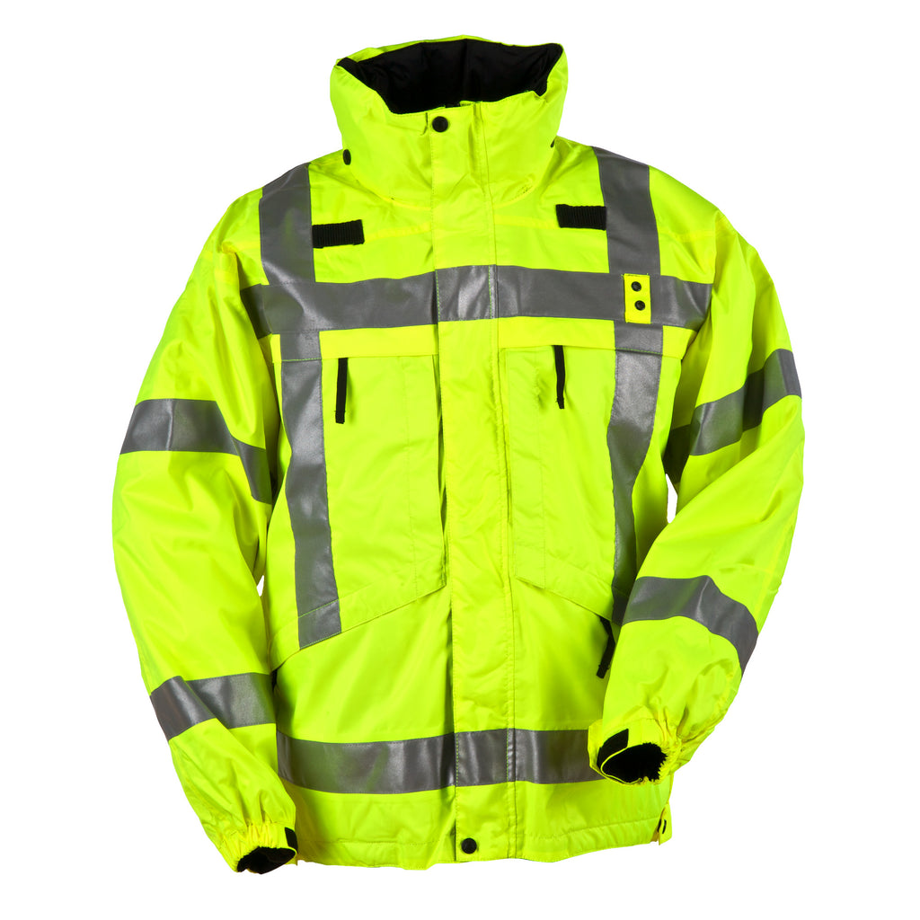 This 5.11 Tactical 3-IN-1 Reversible High-Visibility Parka is the perfect choice for any Firefighter. Crafted out of waterproof materials and featuring reflective tape, this parka keeps you both visible and dry. For added comfort and protection, the jacket is reversible and contains 100% poly micro fleece on the inside. Stay safe and comfortable with the class 3 high-visibility parka from 5.11 Tactical.