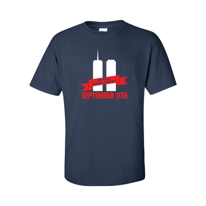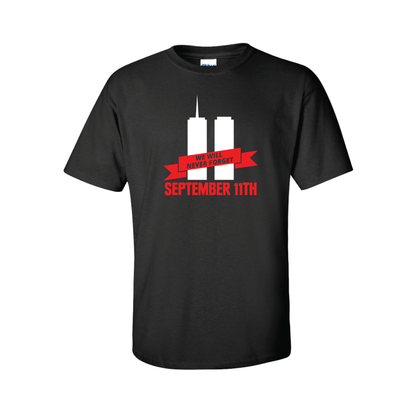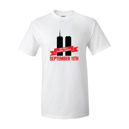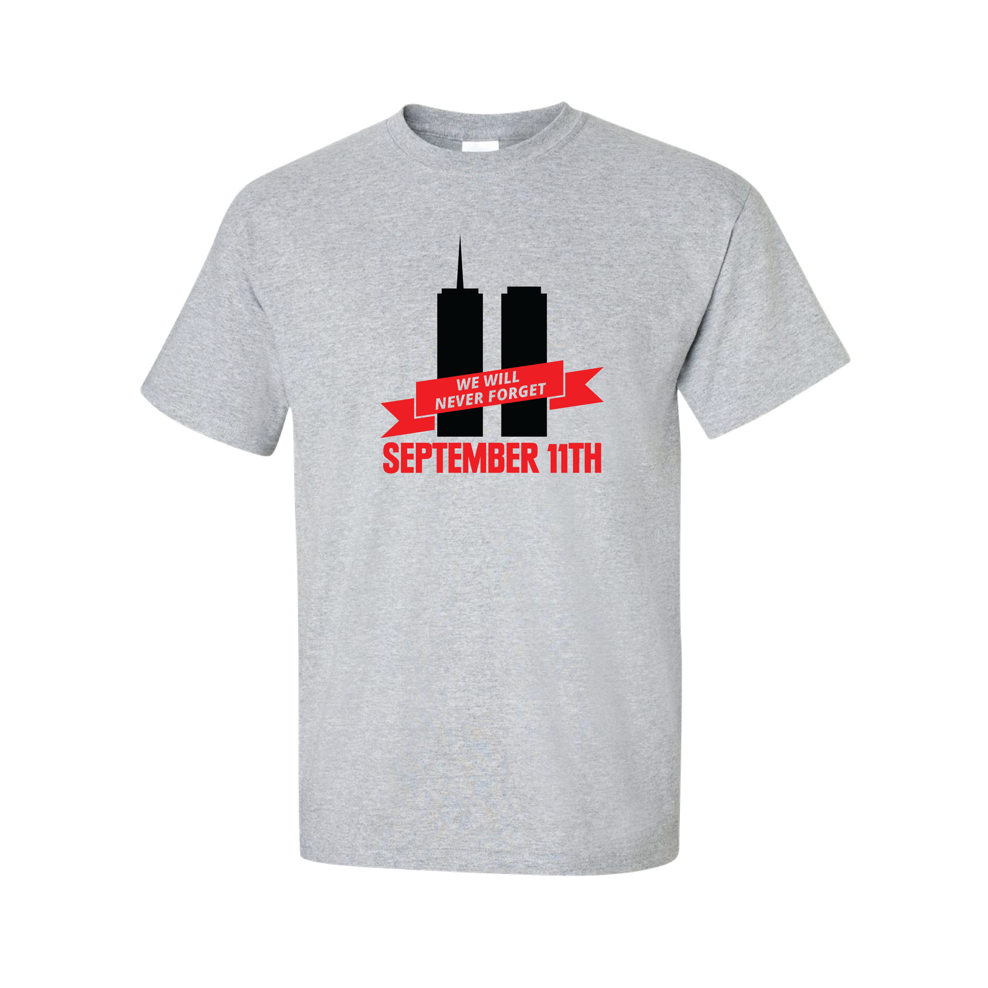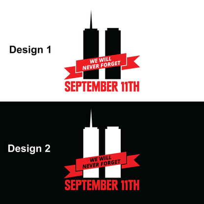 Show support for the brave firemen and firewomen who risked their lives to save those on 9/11. This firefighter shirt design features 2 different design colors: Design 1 features white towers and text, and Design 2 features black towers and text.