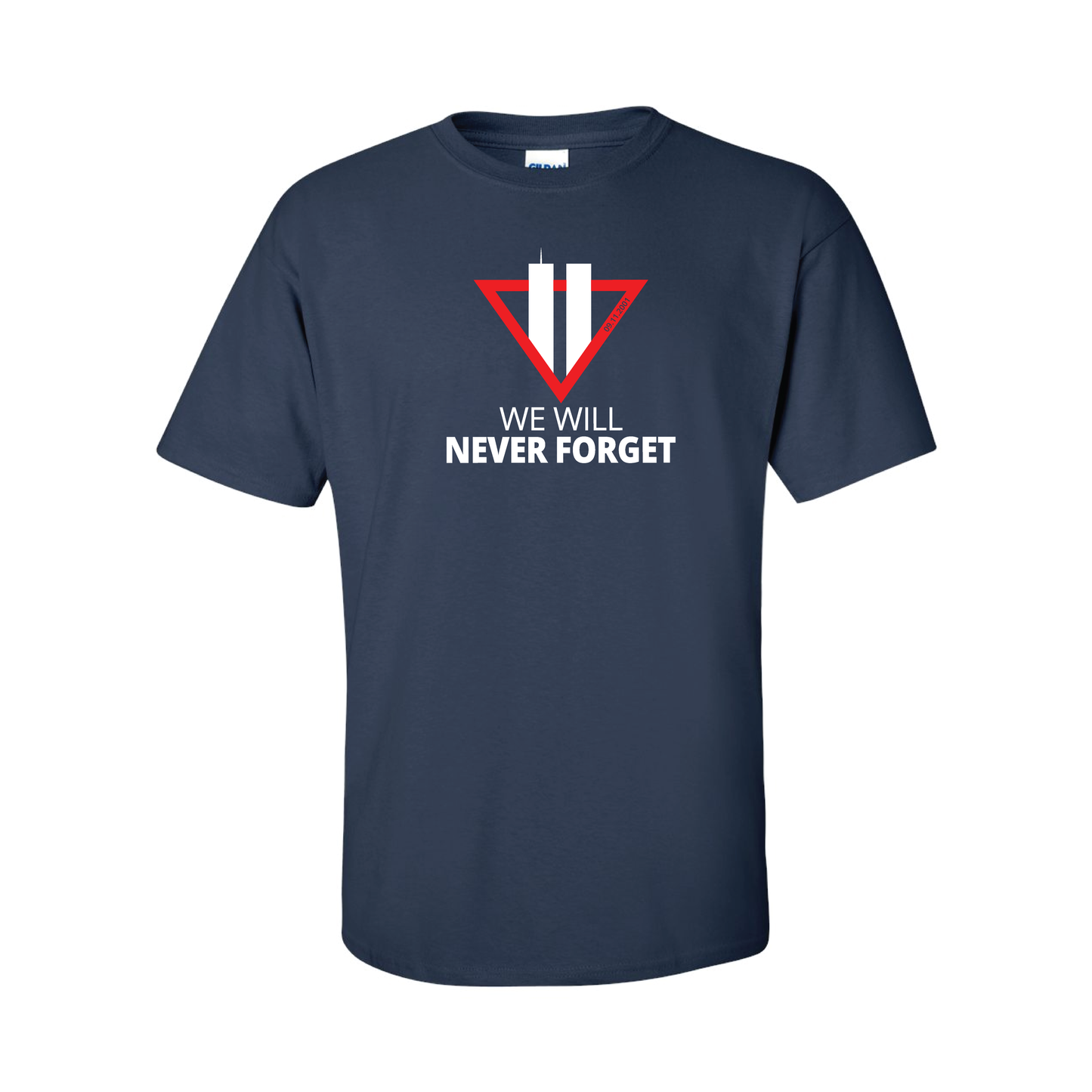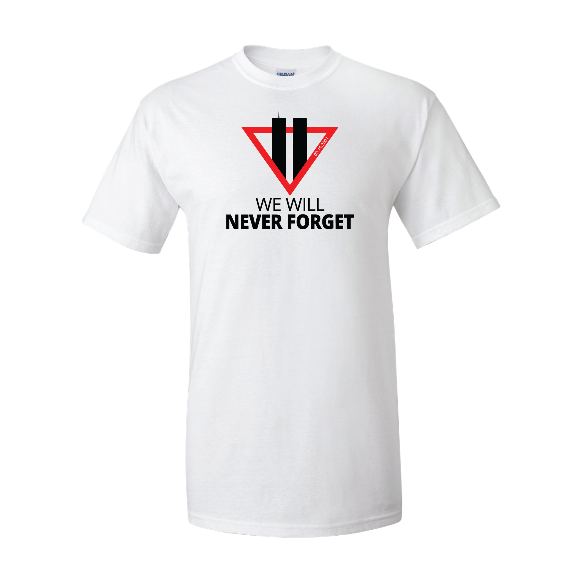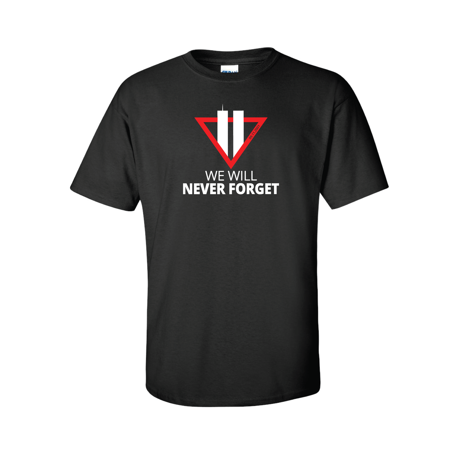 Show support for the brave firemen and firewomen who risked their lives to save those on 9/11. This firefighter shirt design features 2 different design colors: Design 1 features black towers and text, and Design 2 features white towers and text.