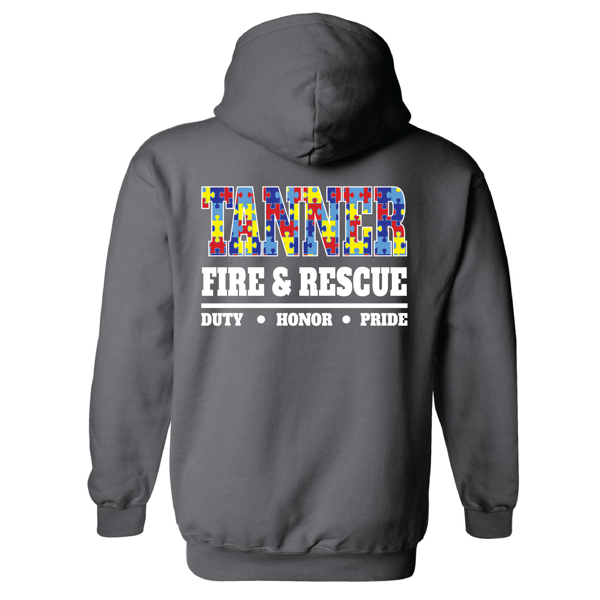 Ignite awareness and inspire change with the Autism Awareness Puzzle Fire Department Hoodie. This full-color, custom-designed hoodie unites your department’s strength with the universal message of autism acceptance. Featuring the iconic puzzle piece graphic—a vibrant symbol of understanding and inclusion—it makes a bold, heartfelt statement wherever you go. Personalize it with your department’s name to proudly represent your crew’s commitment to compassion, on or off duty.