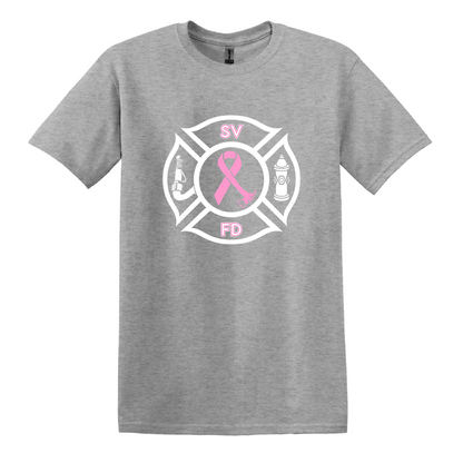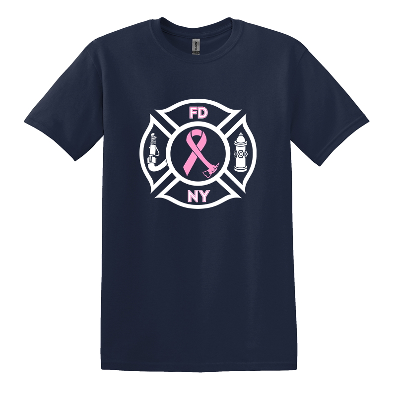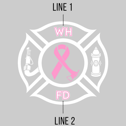 This Fire Department Custom Ace Ribbon Maltese Design T-shirt is the The best design to show your support for your department and your fight to end breast cancer. This shirt comes with this exact design on the front shirt. Options include shirt color, department Letters top and bottom & size.