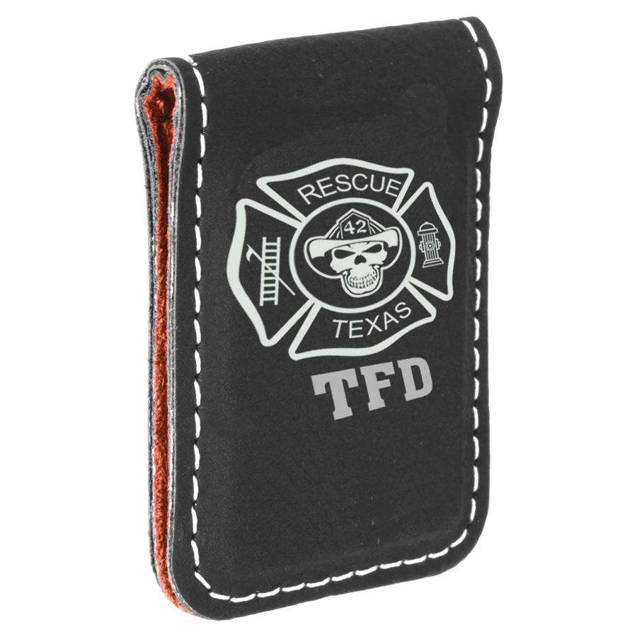 Hold your money with this fashionable money clip. Your fire department initials go on the bottom as well as the text you choose for the top and bottom of the maltese.