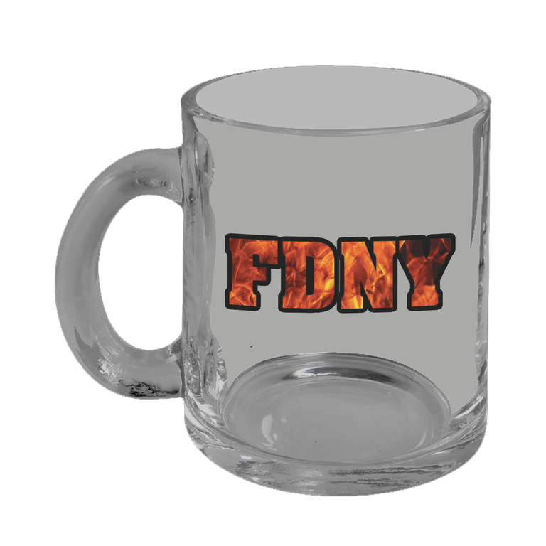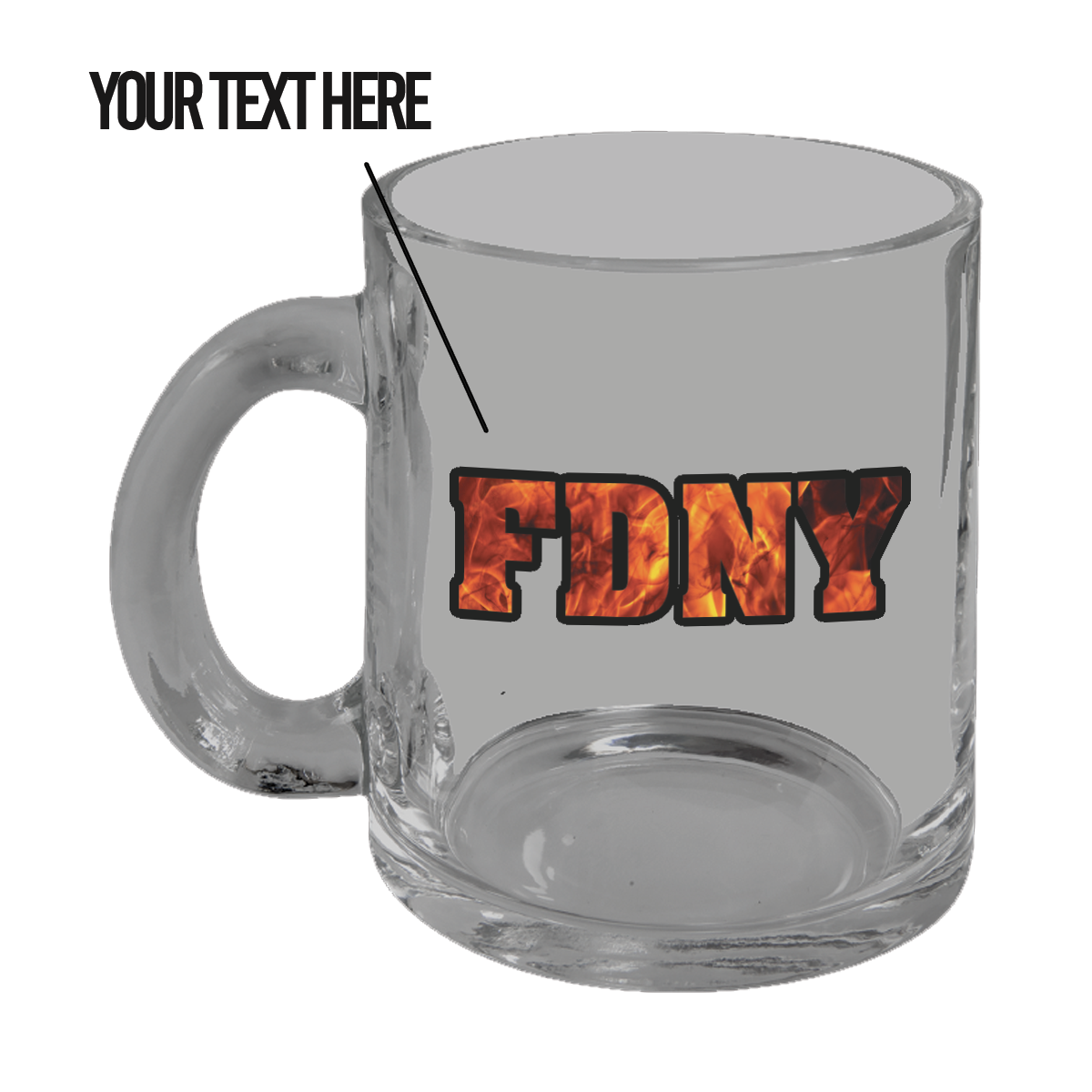 Perfect for the firefighter in your life, this custom glass mug features a firefighter letter logo with fire background and that is personalized with sublimation. With its clear design, this mug is a unique and meaningful gift.