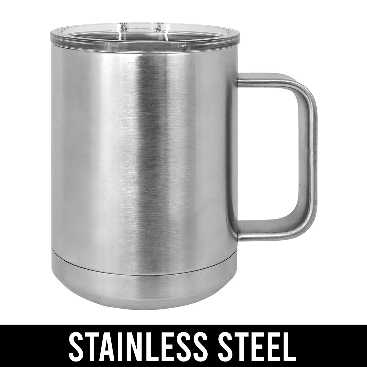 15 oz. Stainless Steel Polar Camel Mugs feature doubl-wall, vacuum insulation with a clear, slider lid. They are 2X heat and cold resistant compared to other tumblers. Polar Camels are made from 18/8 gauge stainless steel (18% chromium/8% nickel) - also known as Type 304 Food Grade.
