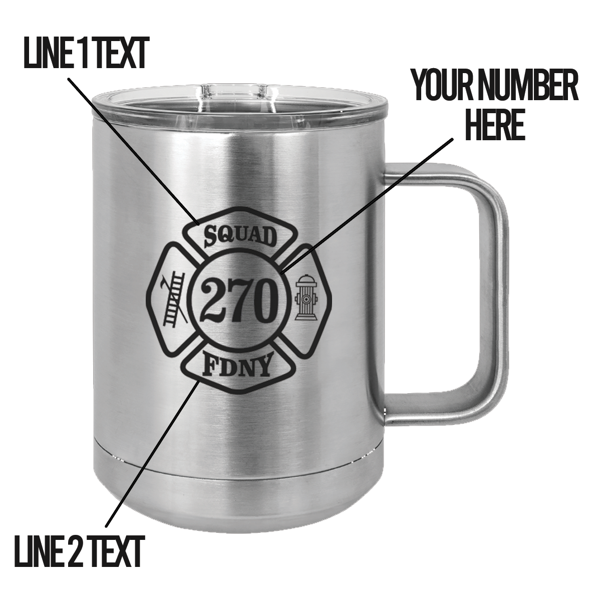 Treat yourself or a firefighter in your life to this unique Custom Firefighter Polar Camel 15 oz. Stainless Steel Vacuum Insulated Mug. This custom tumbler is laser engraved with a firefighter design, and is vacuum insulated to keep beverages hot or cold. Show appreciation or pride with this one-of-a-kind custom mug!