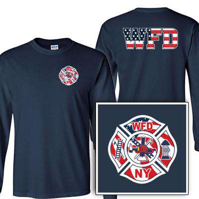 Flag Maltese Cross Design, Firefighter Long-Sleeve Shirt