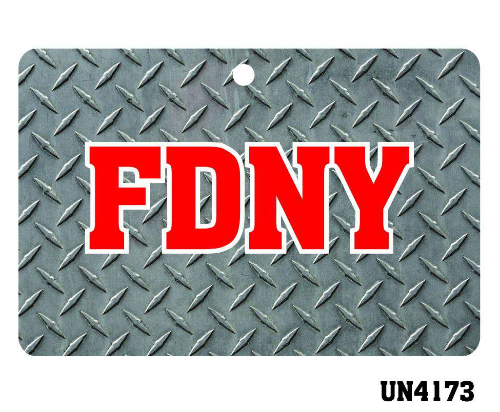 This diamond license plate ornament comes with your fire department's abbreviation printed over a diamond plate background. Choose your color for the text. Outline will appear in white. Perfect Christmas present for a Secret Santa. Firefighter gifts for the firefighter in your life.