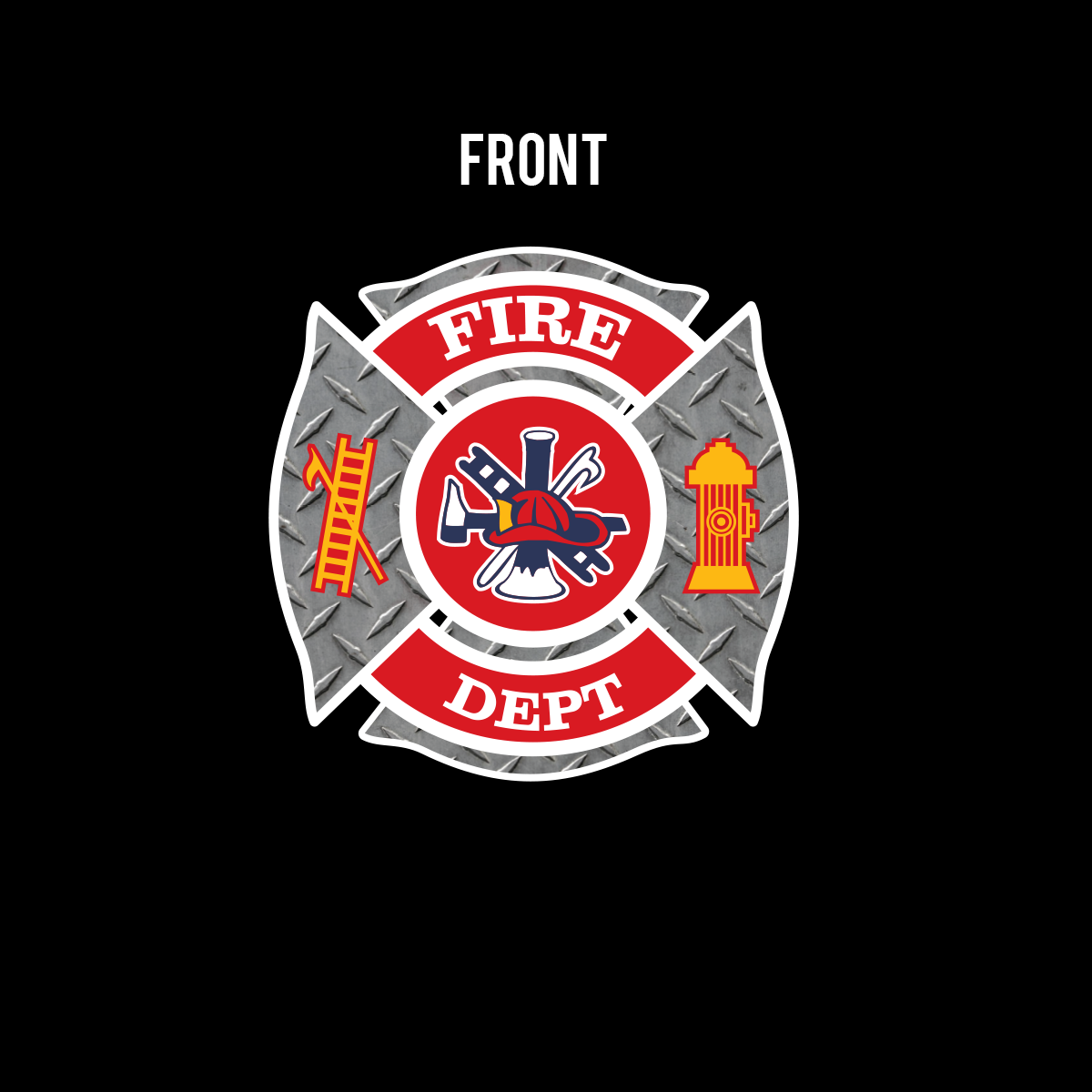 ✅ Maltese Cross Diamond Plate Design – A classic firefighter emblem of unity and service.