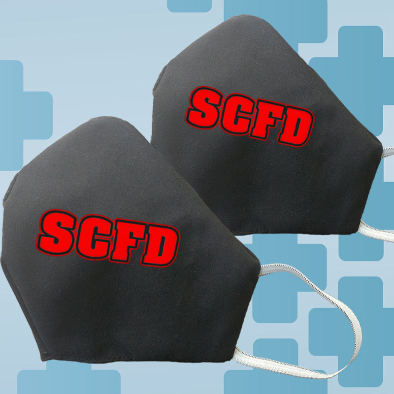 Customize or personalize for your fire district to share with your fellow firefighters in your firehouse today! This face mask comes with a horizontal, three-inches in length and one-inch in width, printed fire department block letters on the left panel. Please select the colors of your choice and input up to a maximum of five (5) characters for your fire district above.