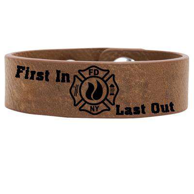 Our First In - Last Out, Faux leather cuff is the perfect gift for your favorite Firefighter! Just choose the color and text for the bottom of Maltese (up to 4 letters).