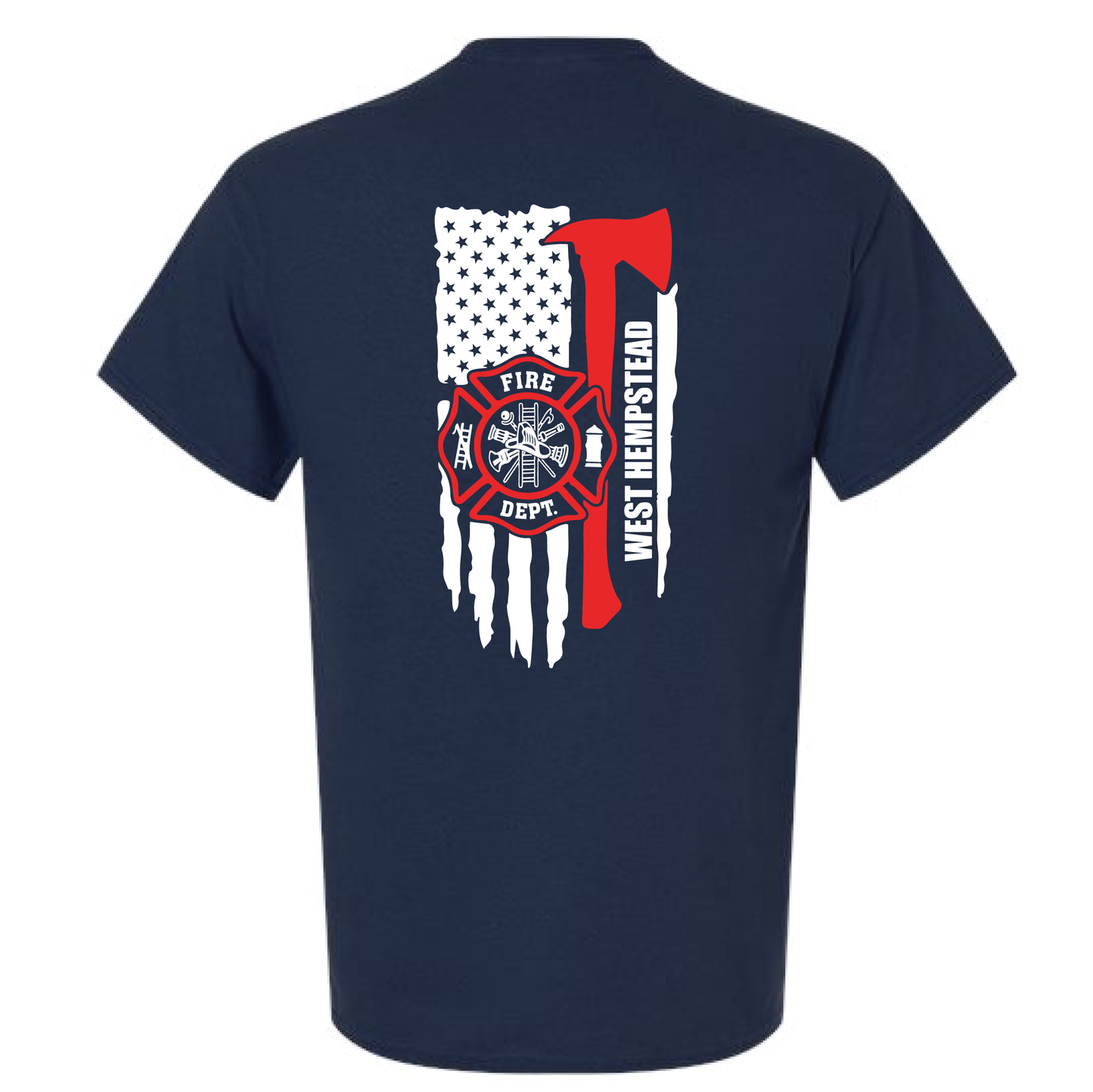 Show your pride and support for your firehouse with our custom-made Flag Maltese Axe firefighter t-shirt. With a bold and vibrant print on both the front and back, this shirt is perfect for any firefighter looking to represent their profession. Comfortable and stylish for everyday wear.