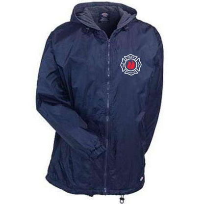 - slash hand-warmer pockets and inside pocket; Dickies logo at lower left hem