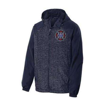 A heather print gives this water-resistant wind jacket a sporty, energized look.
