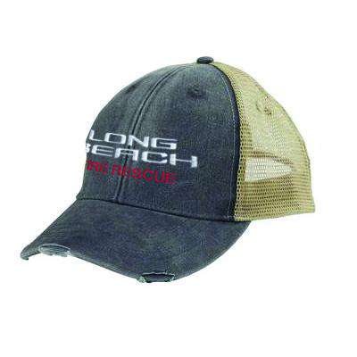 - distressed torn visor, cotton twill sweatband; four rows of stitching on bill