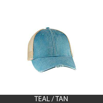 - distressed torn visor, cotton twill sweatband; four rows of stitching on bill
