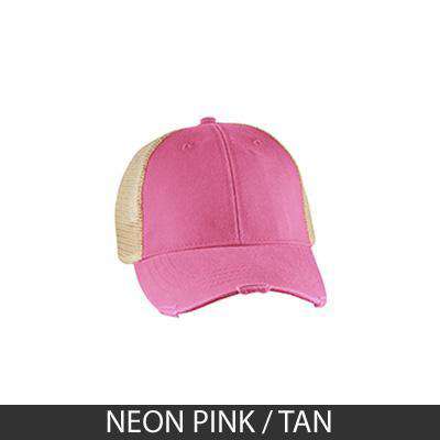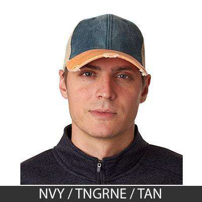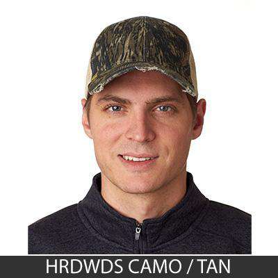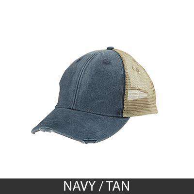 - distressed torn visor, cotton twill sweatband; four rows of stitching on bill