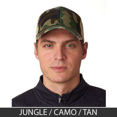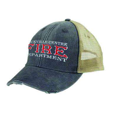 - distressed torn visor, cotton twill sweatband; four rows of stitching on bill