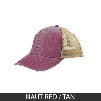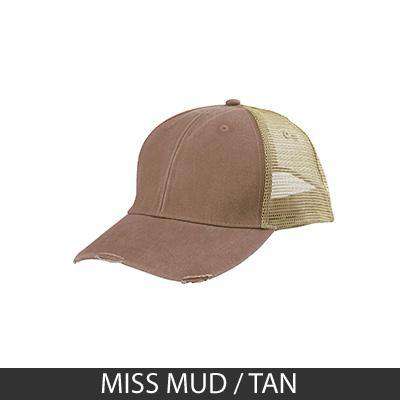 - distressed torn visor, cotton twill sweatband; four rows of stitching on bill