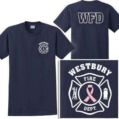 This Special Edition Fire Department Breast Cancer Awareness Maltese Cross T-shirt is a favorite of many firefighters in the month of October. The department name can be changed over the top of the Maltese Cross on the front as well as the letters on the upper back. Other options include shirt color, size and print color for the front and back. The ribbon in the center of the Maltese cross will remain Pink in honor of raising awareness to find a cure for breast cancer.