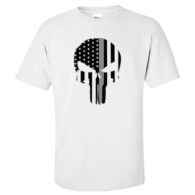 This Thin Gray Line "Patriotic Skull" Corrections Officer Shirt features a Skull with a Stars and Stripes design background with a Thin Gray/Silver Line for one of the Stripes.