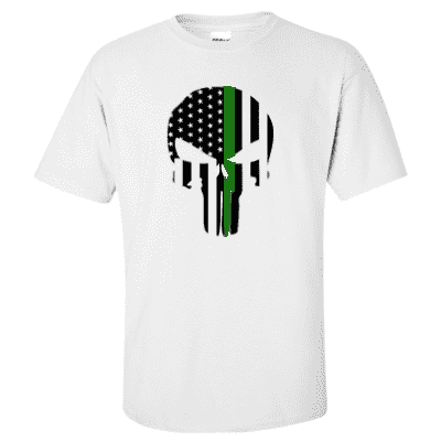 This Thin Green Line "Patriotic Skull" EMS Shirt features a Skull with a Stars and Stripes design background with a Thin Green Line for one of the Stripes.