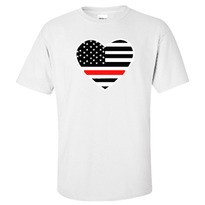 This Thin Red Line "Patriotic Heart" Firefighter Shirt features a Heart with a Stars and Stripes design background with a Thin Red Line for one of the Stripes.