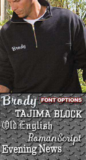 Add an embroidered name or engine number, etc. to the right chest of your garment. Please specify color, font style and what is to be written. If getting 2 lines please change quantity to 2 and specify in box 1st line and 2nd line. Specify any special directions in the, WORDING TO BE EMBROIDERED box, it will expand to fit whatever you type in. Someone from customer service will contact you if we have any questions. Selecting this feature will add 2-3 business days to the production time of your order.